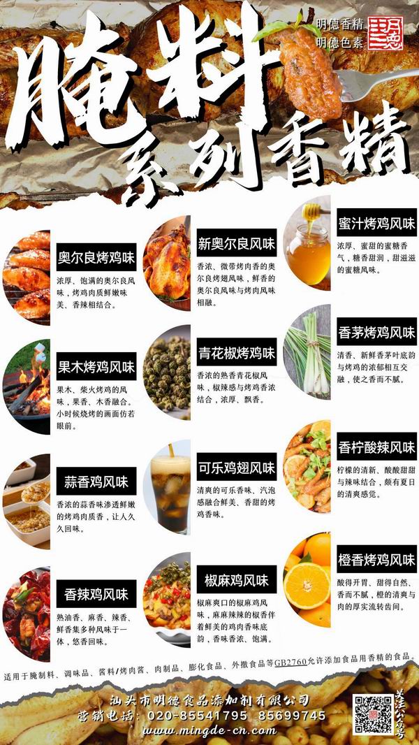 如:果木烤肉香精、炭烤肉香精、燒烤風(fēng)味香精、煙熏肉香精、孜然肉味香精、黑椒肉脯風(fēng)味香精等等,諸如此類,各有特色。